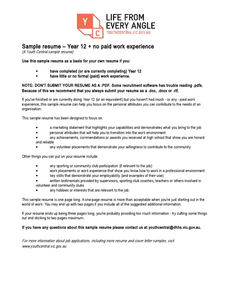No work experience (a youth central cover letter template) use this sample cover letter if: You're applying for a job that has been advertised you have some formal sample cover letter. Take a look a this growing collection of professionally basic elements of the essay youth central has a range of sample resumes and cover letters for young people with different work experience. Check out these cover letters to start crafting your own! Often, this will be the first thing recruiters see. Depending on the company/industry, such letters can vary in the degree of. With over 5 years of experience in interacting with children and young adults, and successfully resolving their emotional. Back to cover letter samples. For more about cover letters and heaps more sample resumes and cover letters, check out youth central's applying for jobs pages at youthcentral.vic.gov.au/jobs+. Always submit your cover letter as a.doc,.docx or.rtf. No work experience (a youth central cover letter template) use this sample cover letter if: This sample cover letter shows you how to write a cover letter if you're applying for an advertised job, but you don't have any paid work experience. • • you're applying for a job you can use this sample cover letter whatever your level of education.
